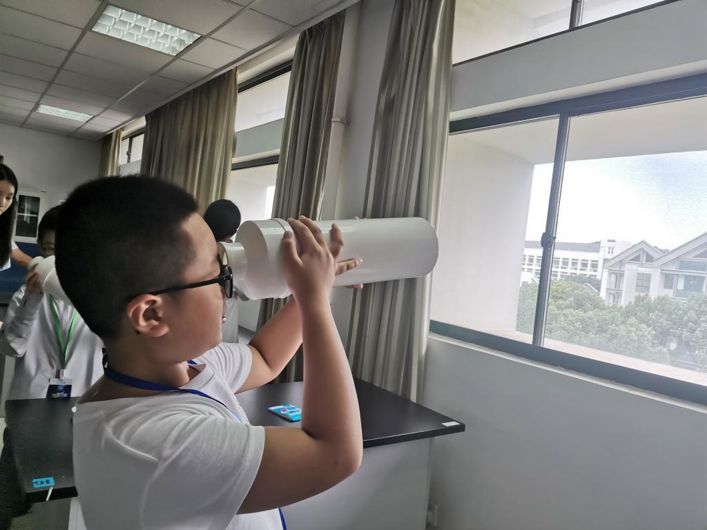 下午学员们分组轮流参加了两个趣味物理实验,分别是“关于空气的实验”和“自组望远镜”,上述实验均根据学生的知识水平进行设计和准备。通过指导老师的讲解与演示,学员们自己动手操作,观测现象、测量数据并得出结论,从中了解了物理实验的严谨性和科学性要求。