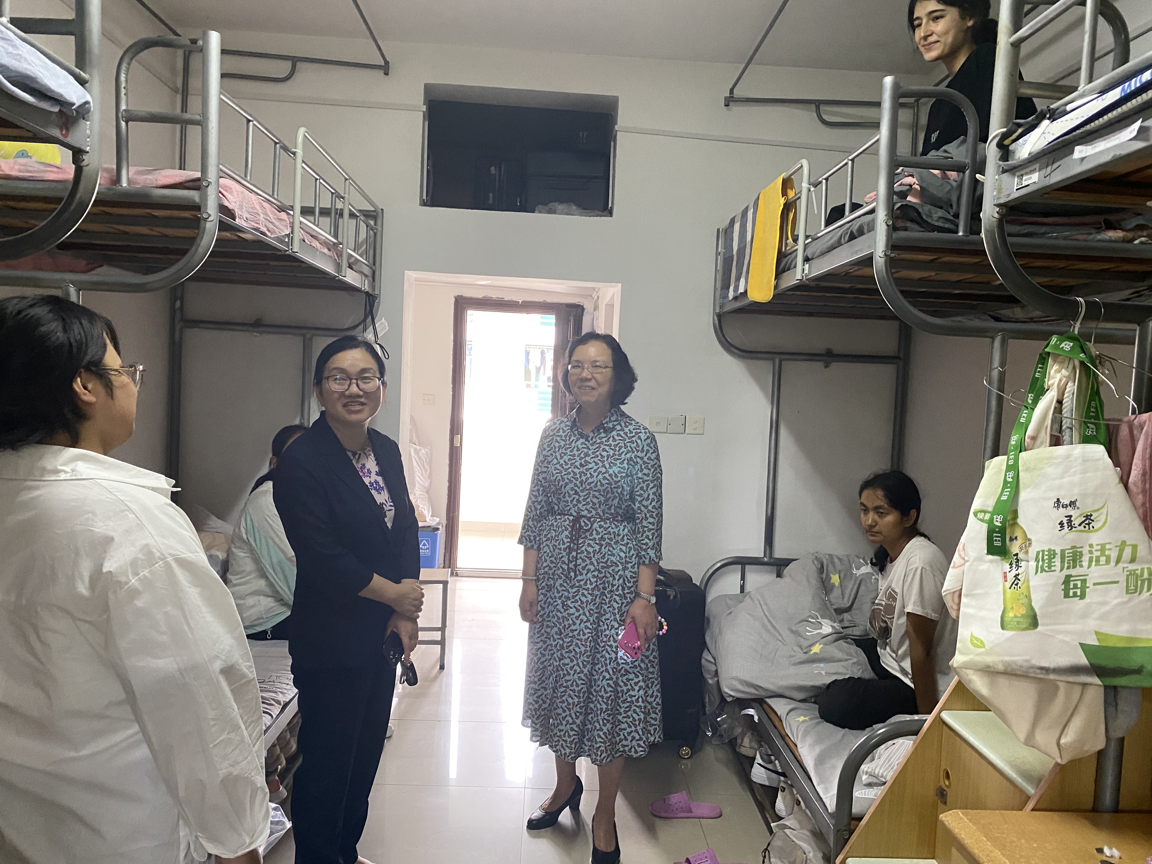 领导与同学们展开亲切交流,详细了解了新生的报到情况,鼓励大家尽快适应新环境、融入新集体,并再次排查新生宿舍安全情况,普及宿舍安全常识,确保宿舍安全稳定。走访期间,辅导员与班主任老师提醒新生要遵守宿舍安全管理规定,养成良好的生活卫生习惯,并再次宣传反诈防骗知识,鼓励新生保持积极健康的心理状态,共同营造和谐友爱的宿舍、校园环境。