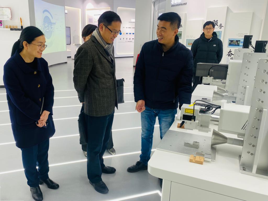 唐柏鉴一行在苏州长光华芯光电技术股份有限公司参观了产品展厅,听取了企业发展历程、业务板块、产品研发等相关介绍。座谈交流中,唐柏鉴阐明此次访企拓岗的目的,并介绍了学校的办学实力、人才培养特色和毕业生能力素质特点。他表示,物理类专业是我校的老牌专业,学校将与企业行业一起共同探索产教协调育人机制,不断提升人才培养目标与岗位需求的适配度,助力毕业生更加充分、更高质量就业。苏州长光华芯半导体激光创新研究院执行院长李顺峰介绍了企业概况、人才需求和人才培养体系。随后,双方就共建产教融合平台、强化协同育人、实习就业合作、实践课程安排、学科竞赛筹办等内容展开深入交流。