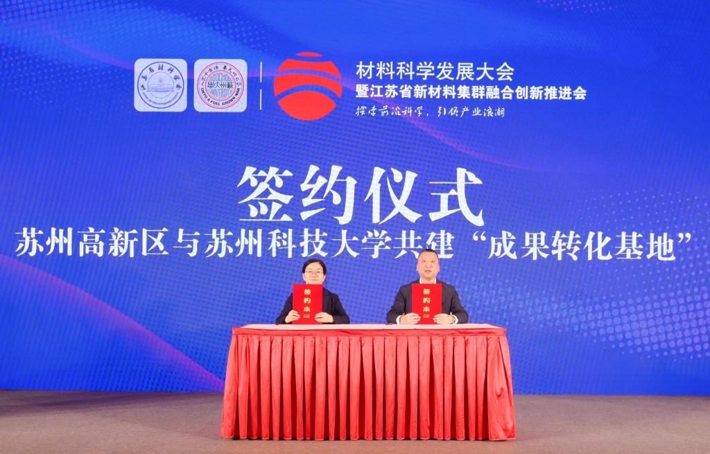 党委书记马春兰与苏州高新区管委会副主任沈琰签署“产学研成果转化基地”协议,将深化我校与高新区政府在新材料技术研发和成果转化方面的合作。