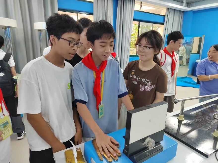讲座后,学生们参观了江苏省科普教育基地——苏州科技大学物理探索科普馆。在支部党员和大学生志愿者的讲解指导下,学生们亲手操作了“混沌摆”、“窥视无穷”、“无线充电”等物理实验设备,在互动体验中感受物理奥秘。