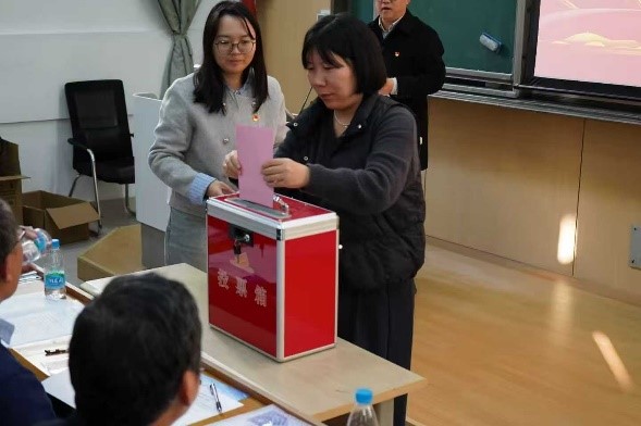 党委副书记、组织委员周茹同志作《关于党费收缴、使用和管理情况的报告》。与会党员审议并一致通过了以上两份报告。随后,按照大会议程,审议通过了大会选举办法,党委委员候选人名单和监票人、计票人名单。大会以无记名投票方式,差额选举产生了新一届B体育官网