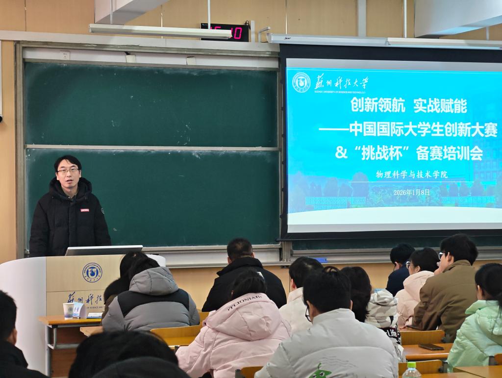 在双创育人方面的扎实工作,强调学校将持续支持学科竞赛与创新能力培养,并寄语师生以赛促学、以赛促创,将项目培育融入人才培养全过程,争取在更高级别赛事中展现苏科大风采。