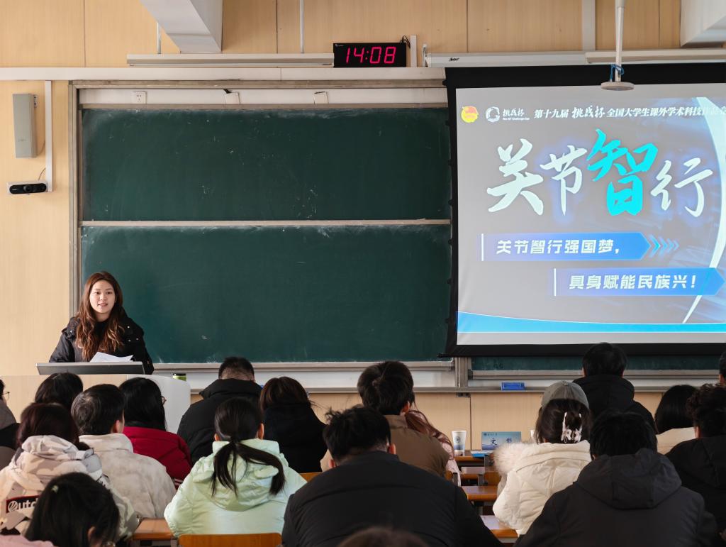 培训会上,多场干货内容有序铺展,备赛指导精准落地。首先开启优秀项目路演展示环节:第十九届“挑战杯”全国大学生课外学术科技作品竞赛全国一等奖项目“关节智行”团队现场还原比赛路演场景,方雨轩同学以参赛主讲身份,完整呈现项目答辩全貌;第十四届“挑战杯”中国大学生创业计划竞赛国赛金奖项目“微智帆途”团队同步以原赛制路演形式再现项目风采,叶雯同学围绕核心技术、商业模式与市场前景进行了生动呈现,为师生提供了可借鉴的实战模板。