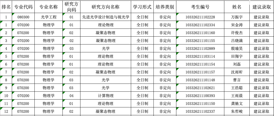 B体育官网 2026年硕士研究生招生复试一志愿建议录取名单