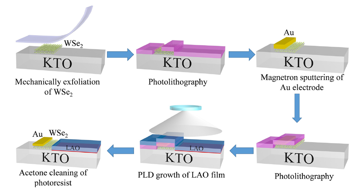 图1. WSe2与LaAlO3/KTaO3界面电子气形成异质结的制备流程图