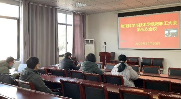 教职工大会第三次会议采用线上线下结合的方式在教2-226和腾讯会议召开。本次会议共有66名教职工出席,会议由B体育