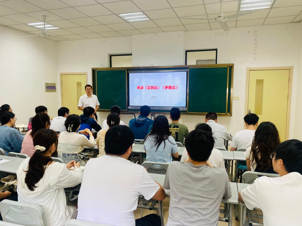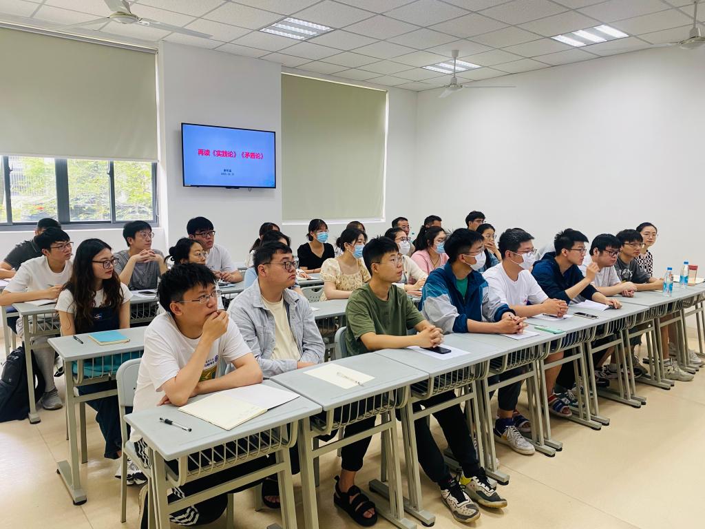 唐柏鉴以《再读<实践论><矛盾论>》为题,全面解读了毛泽东哲学思想代表作的理论成果,并结合党史故事,与同学们深入讨论如何实现“两个结合”的规律和方法。他指出,《实践论》《矛盾论》是马克思主义基本原理同中国具体实际、中华优秀传统文化有机结合的产物,要充分认识著作的重大意义和丰富内涵,牢牢把握团结奋斗的时代要求,切实把思想和行动统一到党的二十大精神上来。