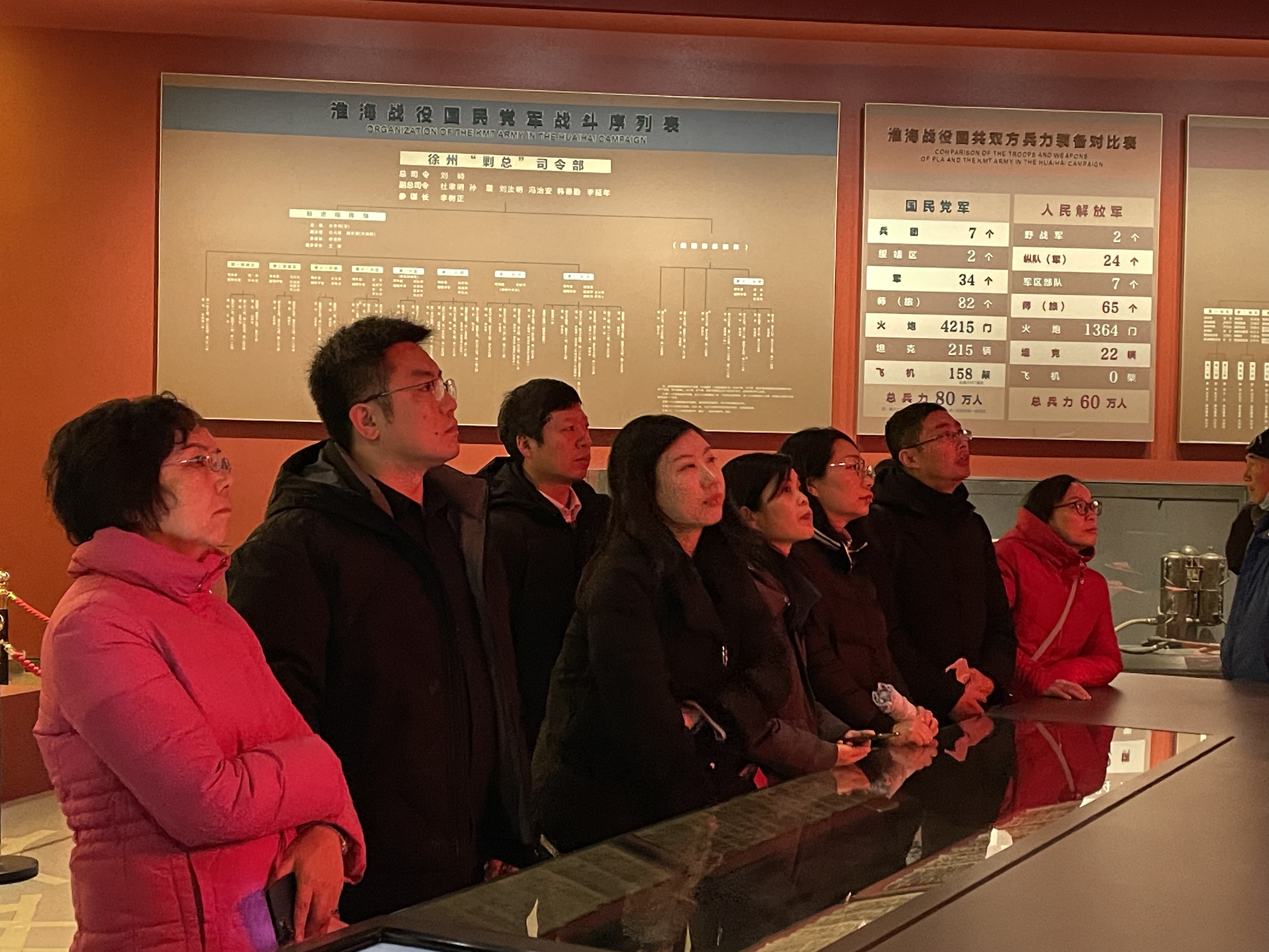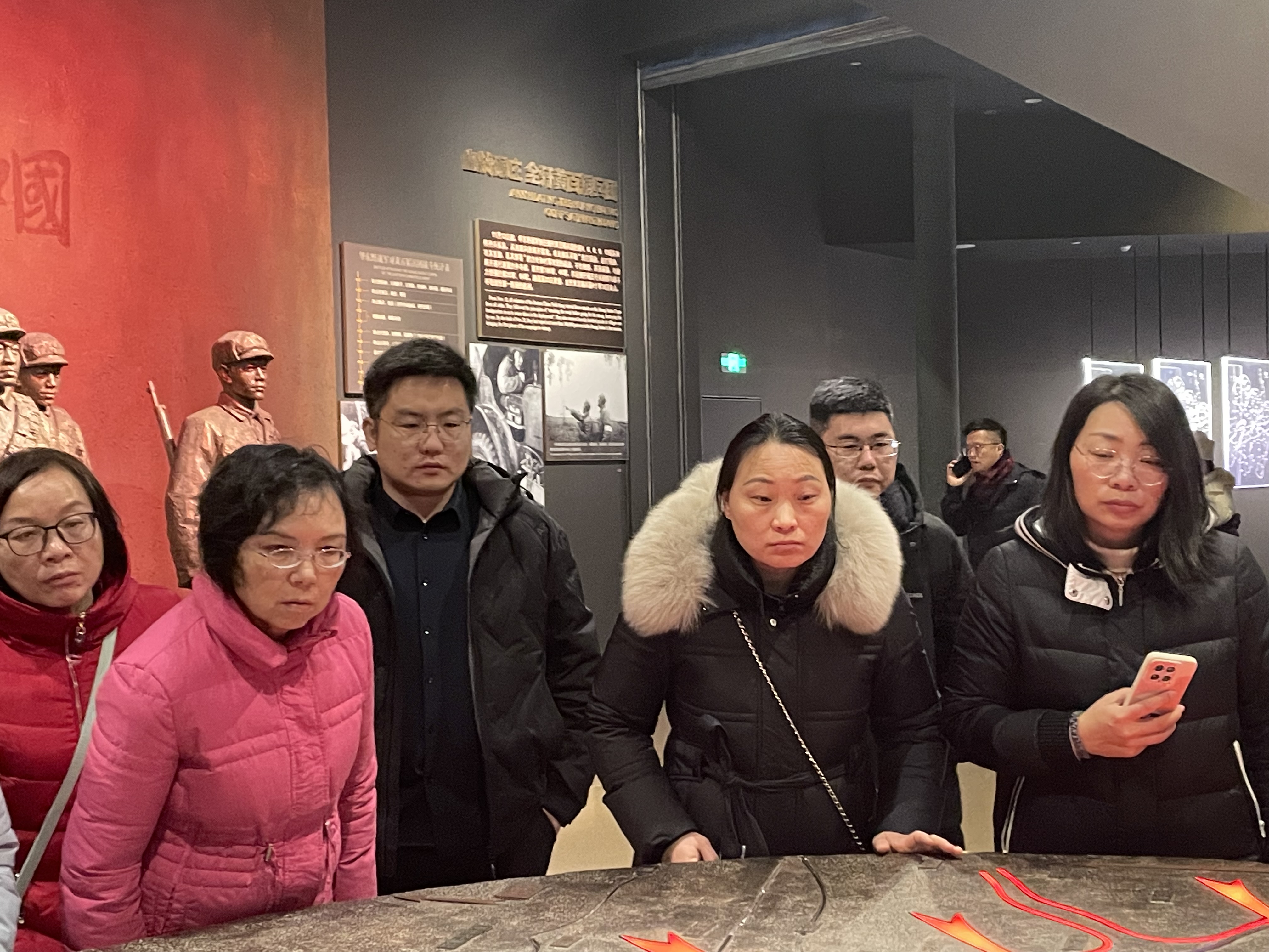 在淮海战役纪念馆,党员教师们重温了那段波澜壮阔的革命历史,认真观看了淮海战役的珍贵文物、历史资料。一张张生动的图片,一件件珍贵的物件,让大家真切体会到在艰苦卓绝的战争年代革命先辈们不怕流血牺牲、勇往直前的伟大精神,深刻领悟了毛主席题词“人民的胜利”的实质内涵,深切感受到人民群众的伟大力量和历史作用。