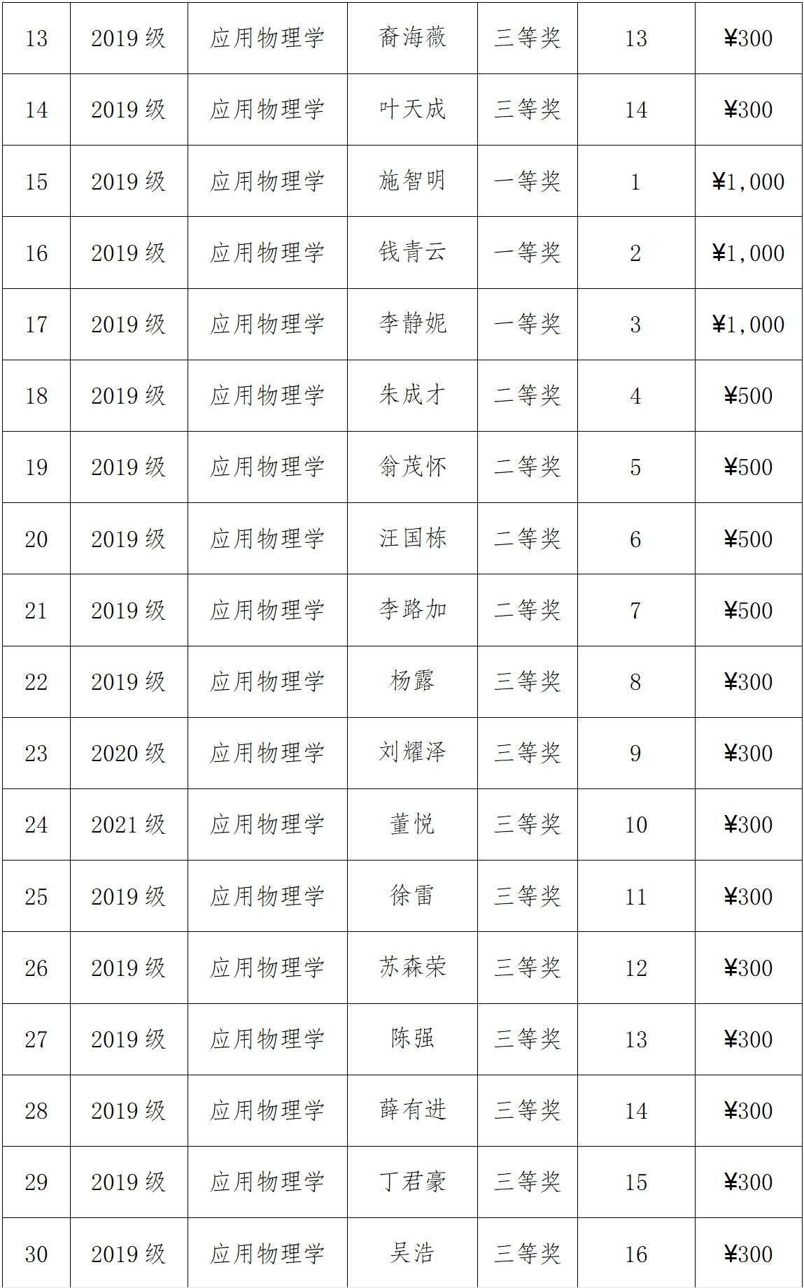 根据B体育 《关于评选2021-2022学年安森美励志奖学金的通知》的相关规定,B体育 评审获得安森美励志奖学金的名单30人,现公示如下: