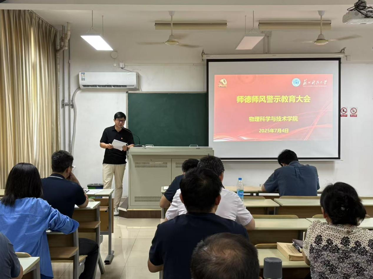 74日下午物理科学与技术B体育 在逸夫楼224召开师德师风警示教育大会。B体育 班子成员、全体教职工参加。会议由党委书记孙云飞主持。