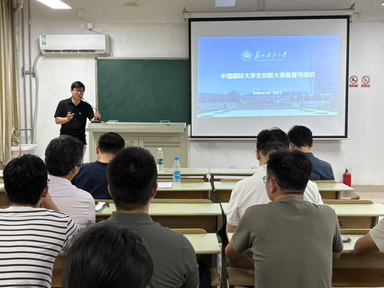 会上,孙云飞重点对中国国际大学生创新大赛进行了详细介绍,系统梳理了该项赛事的备赛体系构建与具体工作组织。他特别从学校特色、项目负责人、科研成果应用等方面讲解了一个好项目的标准;从用好政策蓄水池、培育业务精通的指导教师队伍、加强二级B体育